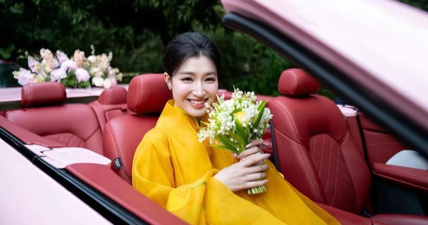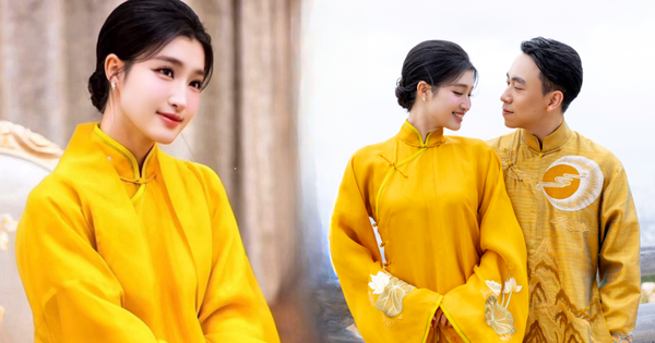 Không chọn sắc đỏ truyền thống hay màu trắng tinh khôi thường thấy, Phương Nhi gây bất ngờ khi diện thiết kế áo dài mang tông vàng nghệ trầm ấm trong lễ Hằng thuận. Lựa chọn này không chỉ tôn lên khí chất thanh tao của "nàng dâu hào môn" mà còn ẩn chứa những thông điệp sâu sắc về phong thủy và sự gắn kết với truyền thống gia đình.