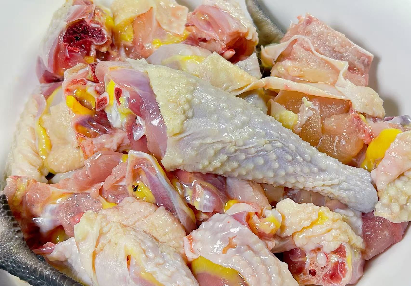 Với thịt gà, bí quyết để canh thơm lừng và đậm đà là không chần qua nước sôi. Thay vào đó, bạn hãy chặt gà miếng vừa ăn, rửa sạch rồi cho vào chảo nóng với chút dầu và gừng lát, đảo nhanh tay trên lửa lớn khoảng 5 phút. Khi thấy da gà hơi co lại, săn chắc và tỏa mùi thơm thì trút tất cả vào nồi đất.