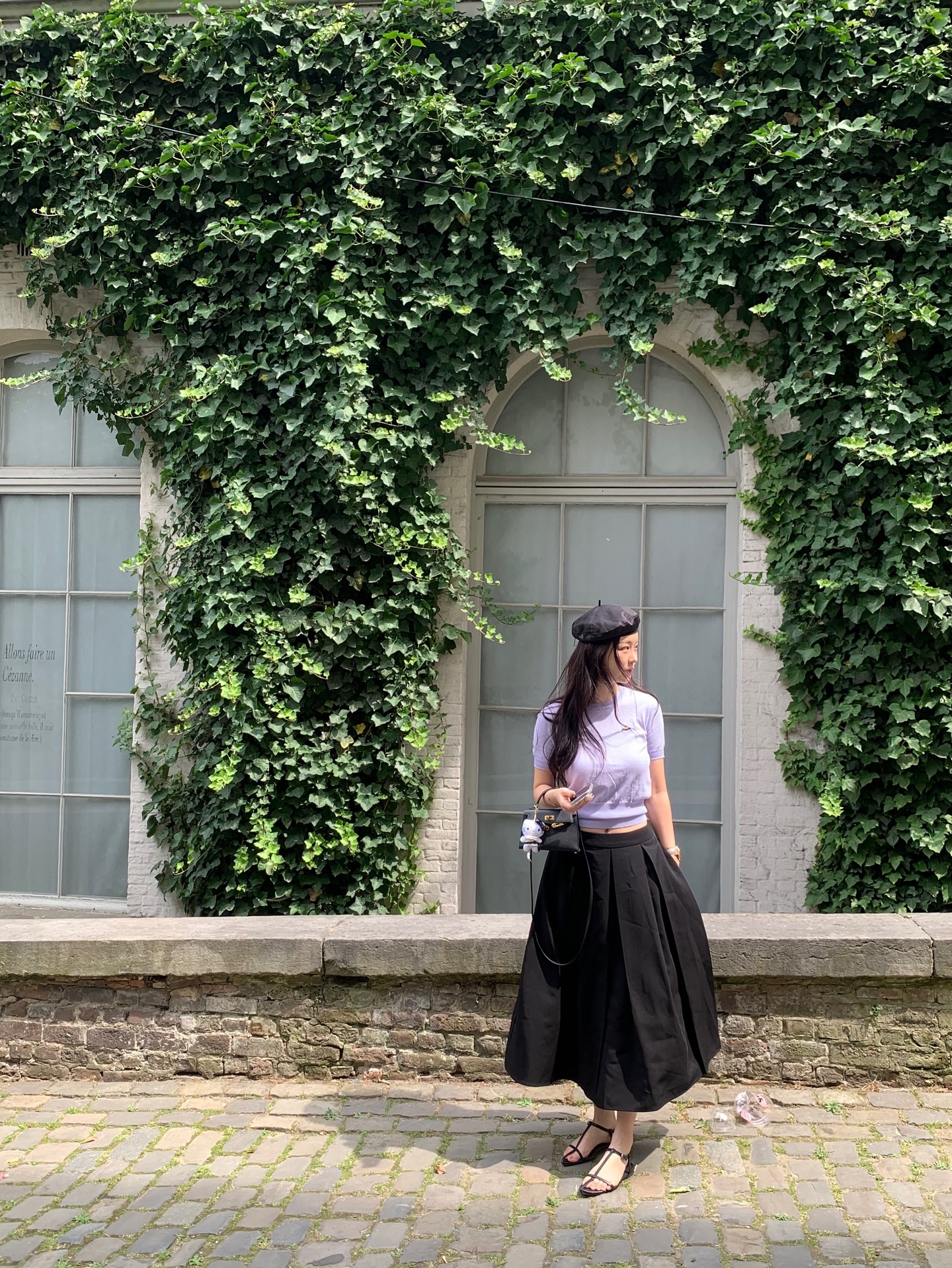 Nếu bạn muốn đôi chân trông dài hơn, hãy chọn những chiếc chân váy mini có cạp cao, kết hợp cùng áo thun ôm hoặc áo lửng. Điều này sẽ tạo ra một đường nét liền mạch từ eo xuống chân, giúp vóc dáng của bạn trông thanh thoát và cao ráo hơn hẳn. Bạn có thể thử các kiểu chân váy mini có họa tiết đơn giản, vì chúng không làm cho dáng bạn bị "nặng" hay mất cân đối.