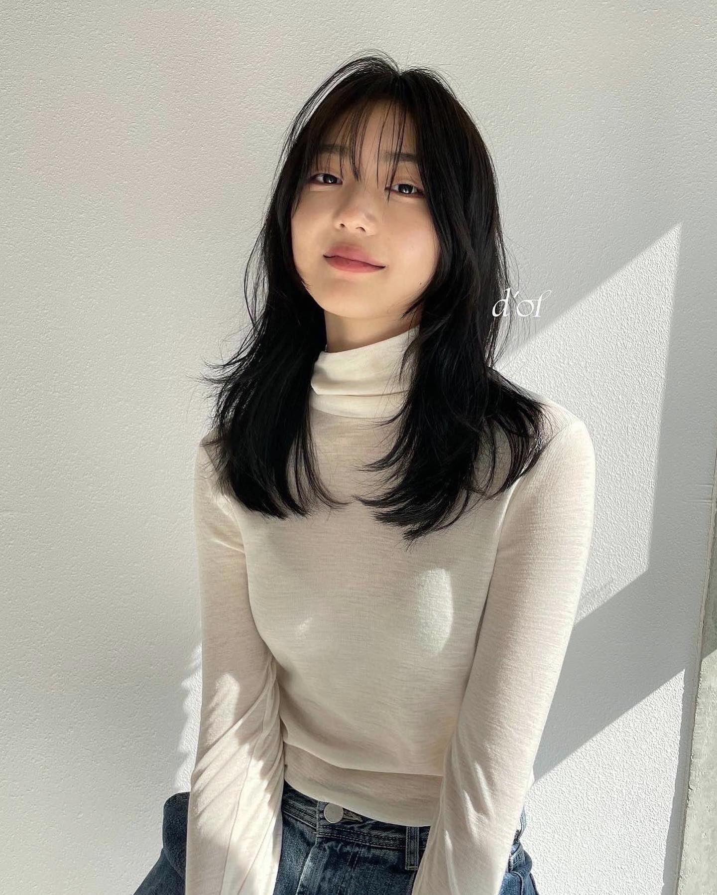 Tóc ngang vai mái thưa là một lựa chọn cực kỳ phổ biến, đặc biệt trong mùa thu đông. Với phần mái thưa nhẹ nhàng, tự nhiên, kiểu tóc này mang lại vẻ ngoài ngọt ngào, dễ thương nhưng cũng rất hiện đại. Mái thưa không chỉ giúp che đi những nhược điểm trên khuôn mặt như vầng trán quá cao, mà còn tạo cảm giác gương mặt sáng hơn, thanh thoát hơn.