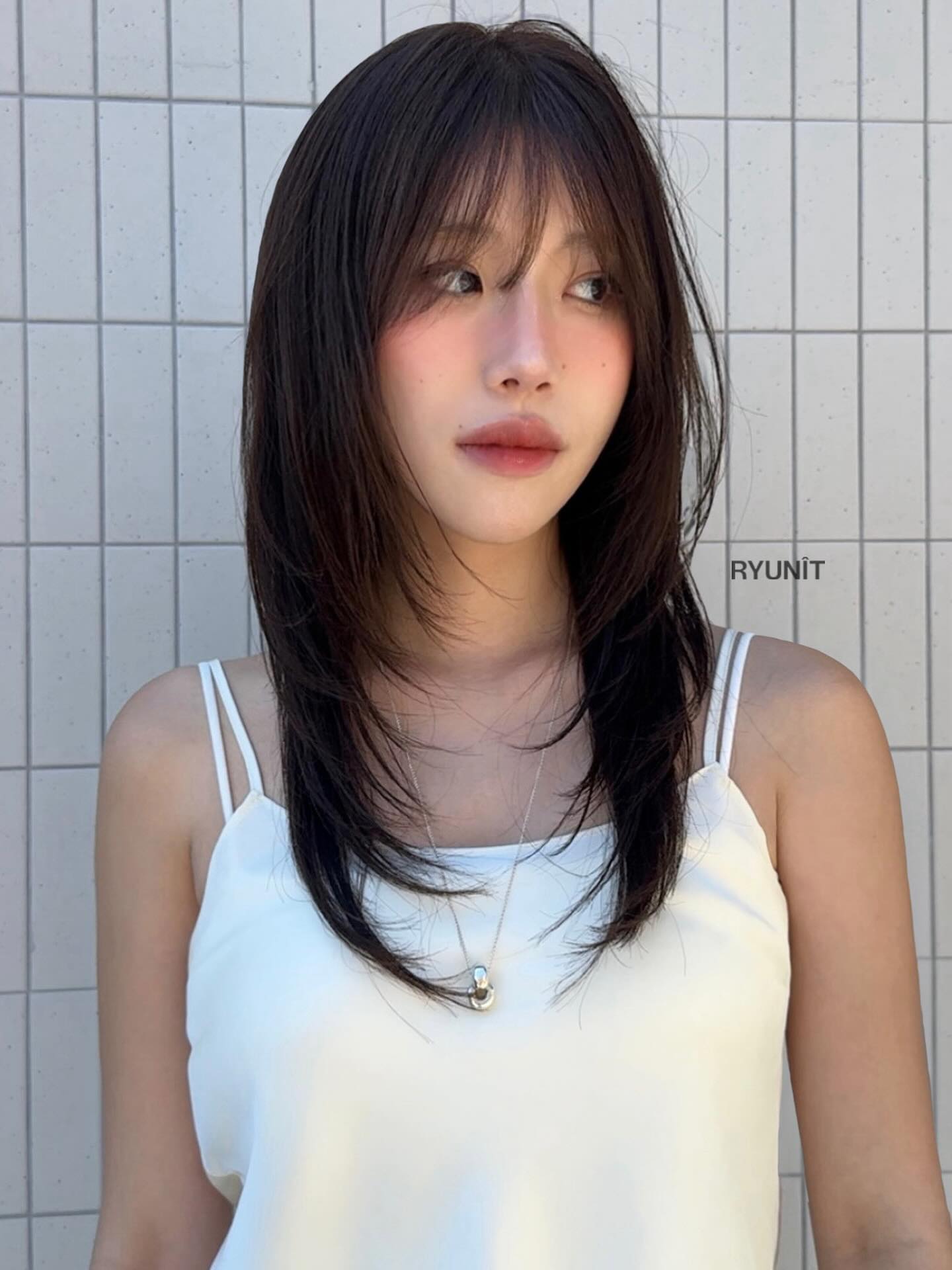 Kiểu tóc này thích hợp cho những ai có khuôn mặt dài hoặc mặt gầy. Phần mái thưa sẽ giúp làm cho khuôn mặt trông đầy đặn và mềm mại hơn, đồng thời không gây cảm giác nặng nề hay bức bối như những kiểu mái dày khác. Mái thưa cũng giúp tạo điểm nhấn nhẹ nhàng, không quá làm nổi bật một phần khuôn mặt, mà lại có sự hài hòa, cân đối.