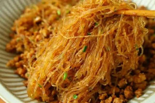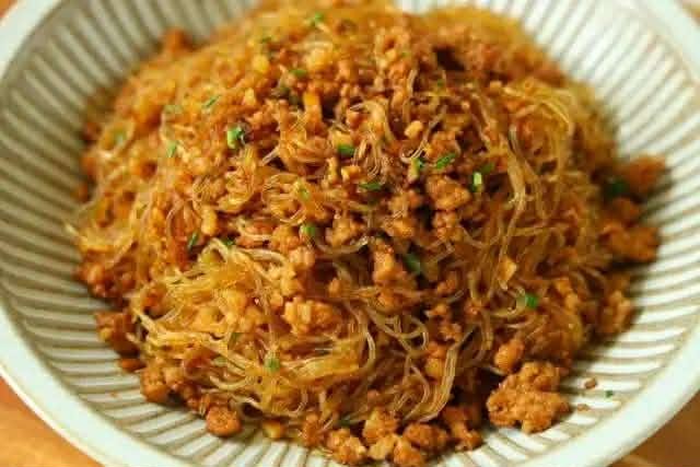 Món miến xào thịt băm tuy đơn giản nhưng đầy đủ dinh dưỡng. Thịt heo cung cấp protein, miến bổ sung năng lượng. Tỏi và hành lá không chỉ tăng hương vị mà còn bổ sung vi chất. Vào ngày mát trời, một bát miến xào thịt băm nóng hổi vừa bổ sung năng lượng, vừa nhẹ bụng, có thể giúp bạn giảm cân.