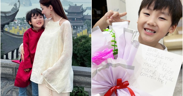 Bé Bo còn tự tay viết thiệp tặng mẹ Hòa: "20/10 con chúc mẹ xinh đẹp, mạnh khỏe và hạnh phúc. Con yêu mẹ".