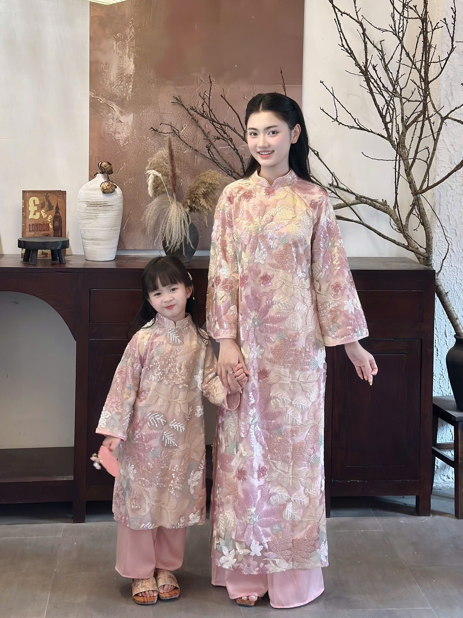 Không chỉ mang nét truyền thống, thiết kế còn toát lên vẻ hiện đại, giúp mẹ và bé thật nổi bật và rạng rỡ khi cùng nhau diện đồ đôi trong những ngày đầu năm.
