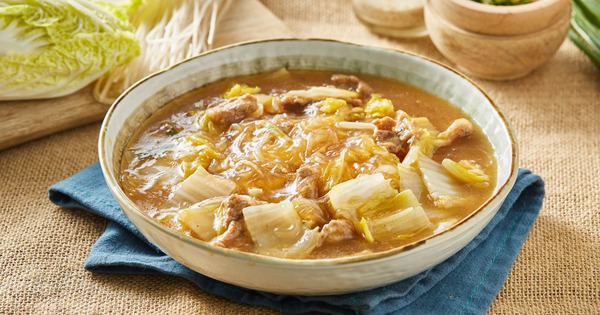 4. Công thức món ăn thứ tư: Cải thảo nấu đậu phụ, miến và thịt heo