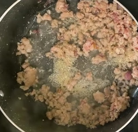 Bước 2: Đập trứng vào bát, thêm một chút nước vào rồi đánh tan. Sau đó bạn phết một chút dầu ăn vào chảo, đun nóng trứng. Đổ hỗn trứng vào chảo, dàn đều rồi chiên chín. Sau đó bạn lấy trứng ra, thái thành dạng sợi và để riêng. Tiếp đó cho một chút dầu ăn vào nồi. Khi dầu nóng, trút thịt băm và gừng băm vào, xào trên lửa lớn cho đến khi thịt săn bề mặt bên ngoài. Sau đó, đổ một lượng nước nóng vừa đủ vào nồi.