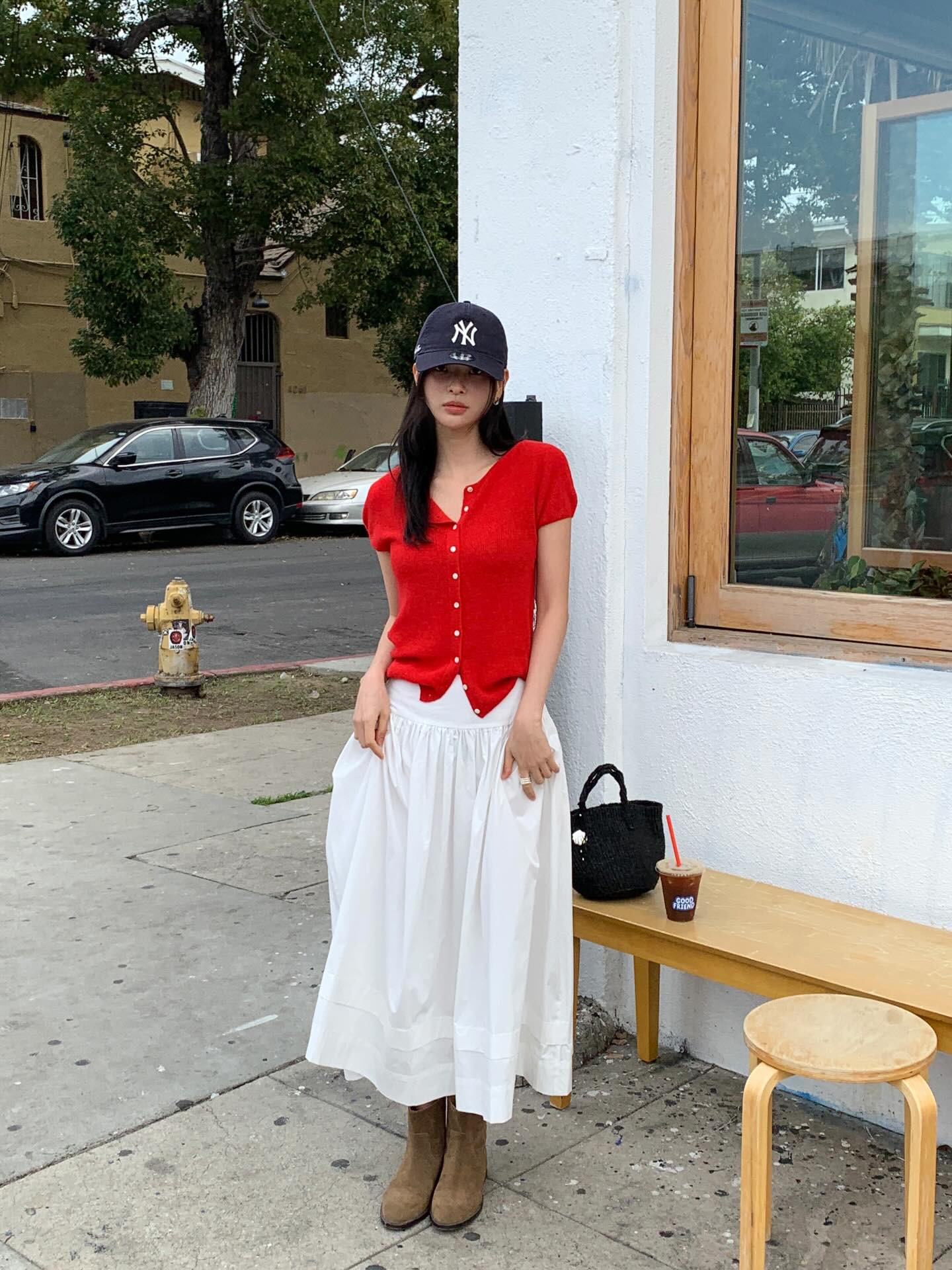 Không khí đầu năm luôn gợi nhắc đến sự tươi mới, và combo áo sáng màu cùng chân váy trắng chính là hiện thân rõ ràng nhất cho tinh thần đó. Chân váy trắng dài mang lại cảm giác nhẹ nhàng, thanh thoát, giúp tổng thể trang phục trông "sáng" và trẻ trung hơn hẳn.