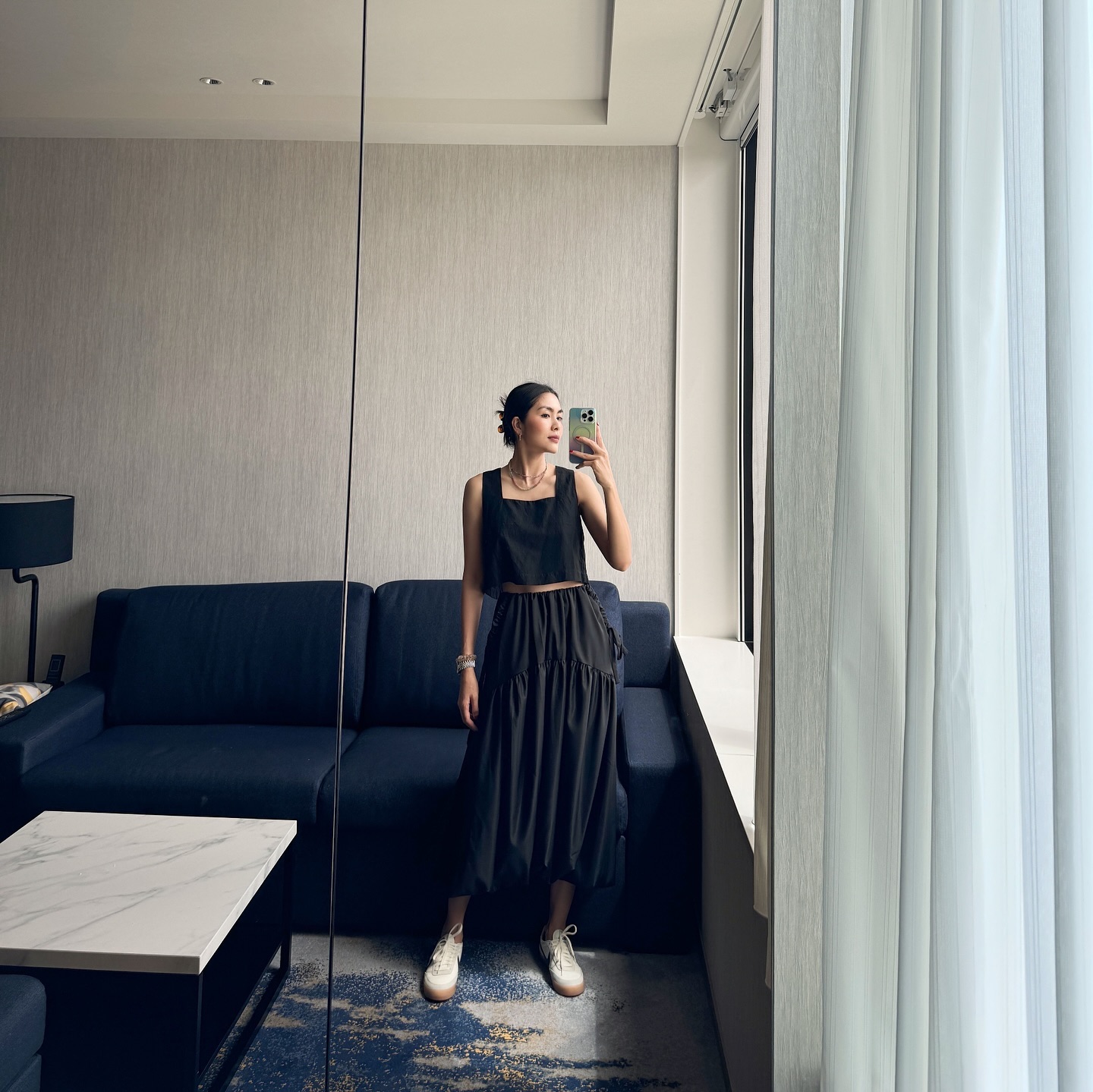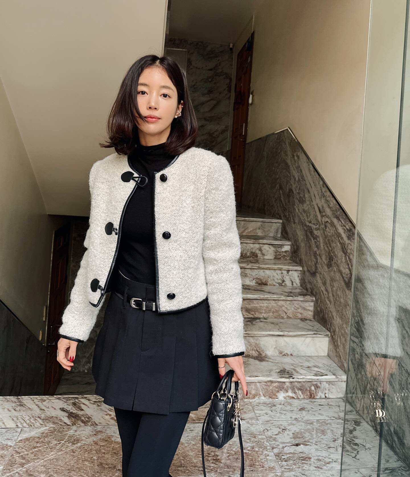 Có một điều mà ít ai để ý là chân váy ngắn không chỉ dành cho những cô nàng trẻ tuổi mà còn là item lý tưởng dành cho phụ nữ ngoài 40. Dù không phải ai cũng dám thử sức với kiểu chân váy này khi đã lớn tuổi, nhưng dì tôi đã chứng minh rằng chân váy ngắn vẫn có thể giúp người mặc trông trẻ trung và duyên dáng. Đặc biệt, khi kết hợp với quần tất màu đen và áo khoác lửng, dì trông như được "hack" tuổi một cách thần kỳ.
