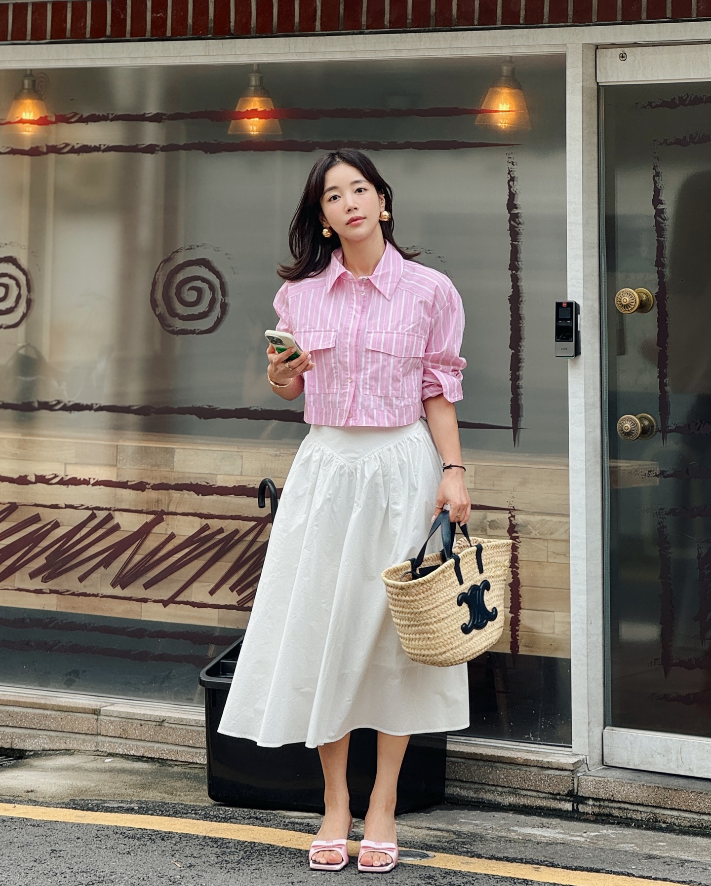 Dì tôi thường chọn chân váy trắng dài qua gối với chất liệu vải dày dặn, kết hợp với áo khoác dáng dài hoặc áo len cổ cao. Màu trắng cũng dễ dàng phối với những màu sắc khác nhau, chẳng hạn như những chiếc áo màu pastel nhẹ nhàng hay tông màu tối như đen, xám để tạo ra sự cân bằng hoàn hảo trong tổng thể trang phục.