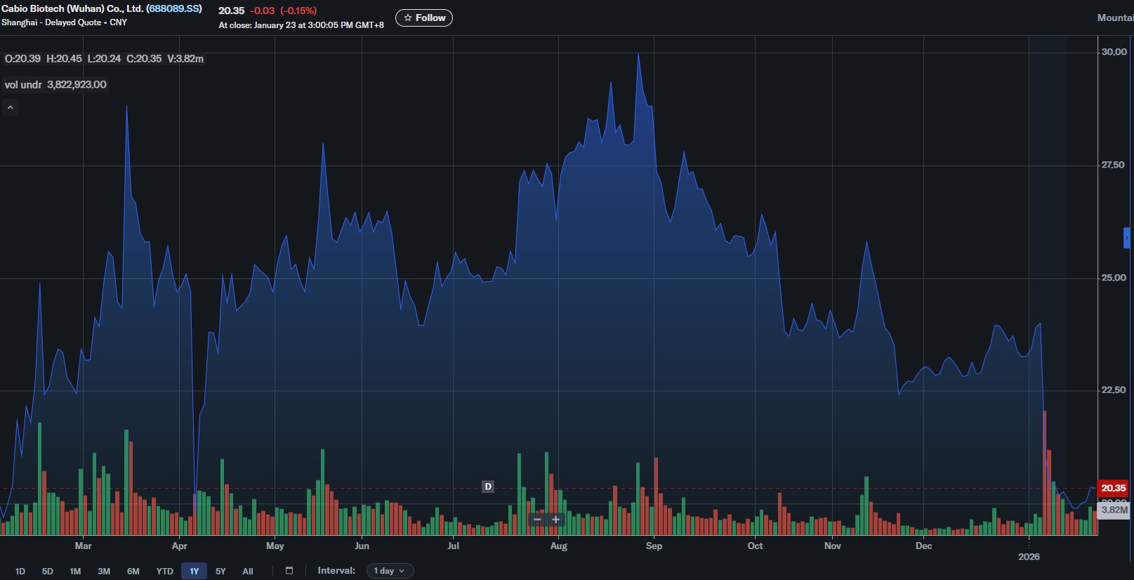 Vào ngày 12/1/2026, Cabio Biotech đã phải gửi văn bản giải trình lên Sàn giao dịch Chứng khoán Thượng Hải. Họ xác nhận đang phối hợp với các khách hàng lớn để kiểm tra lại các lô hàng sau khi cổ phiếu công ty bốc hơi gần 12% giá trị.