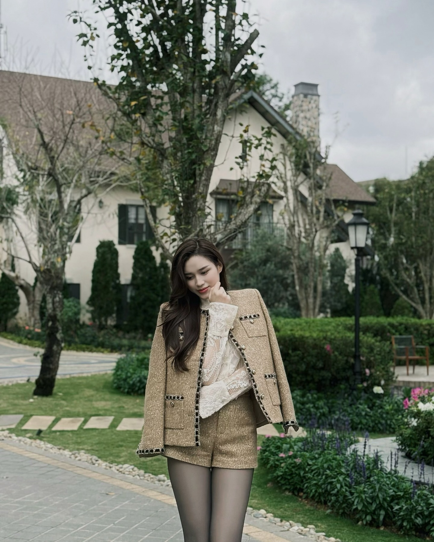 Không quá thường xuyên đăng ảnh thời trang lên trang cá nhân nhưng Đỗ Mỹ Linh mặc bộ cánh nào là "chất" bộ đó. Chìa khóa sang chảnh của Đỗ Mỹ Linh chính là những món thời trang như đầm ren trắng, áo khoác dạ họa tiết, set chân váy vải tweed hay chân váy mini… Ngay cả khi đi du lịch, Đỗ Mỹ Linh vẫn tỏa sáng với vẻ ngoài sang chảnh nhờ những lựa chọn thời trang dịu dàng, tinh tế.