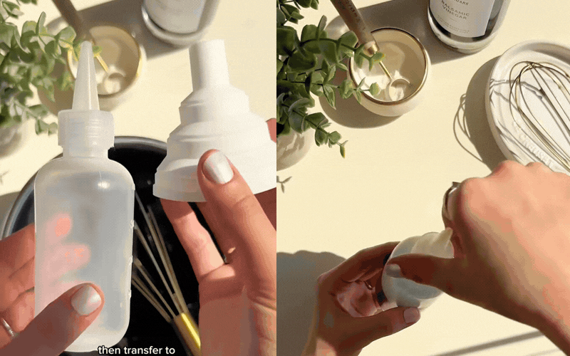Bí quyết thành bại nằm trọn ở khâu canh nhiệt độ: Nếu hỗn hợp quá nóng, áp suất sẽ khiến nó bắn mạnh ra khỏi chai, còn nếu quá nguội, giấm sẽ đông đặc thành thạch ngay lập tức; vì vậy, hãy kiên nhẫn đợi khoảng 2-4 phút để hỗn hợp nguội bớt nhưng vẫn còn ở dạng lỏng ấm rồi mới trút vào chai nhựa có đầu vòi nhỏ.