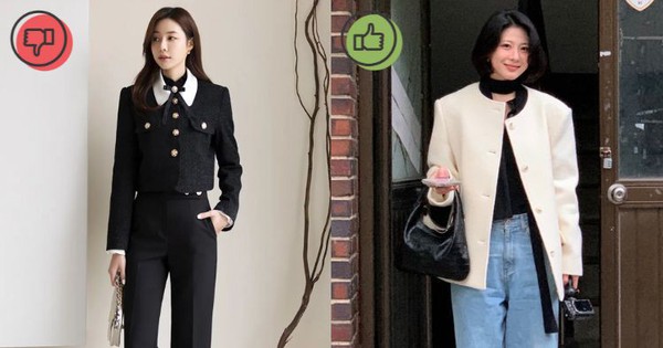 Tweed luôn là chất liệu gắn liền với sự thanh lịch và sang trọng, đặc biệt được ưa chuộng mỗi dịp Tết. Tuy nhiên, những thiết kế tweed quá cầu kỳ với nhiều chi tiết đính kết, tua rua, nút kim loại to bản hay phối màu phức tạp lại đang dần trở nên lỗi thời trong năm 2026. Kiểu áo này không chỉ khó phối đồ mà còn dễ khiến tổng thể trang phục trở nên nặng nề, đứng tuổi hơn so với mong muốn.