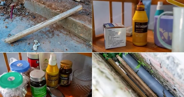 Bên trong căn phòng nơi học viên N. bị hành hung dẫn đến tử vong vẫn còn ngổn ngang các lọ thuốc sát trùng và la liệt những chiếc gậy dài khoảng 40-50 cm.